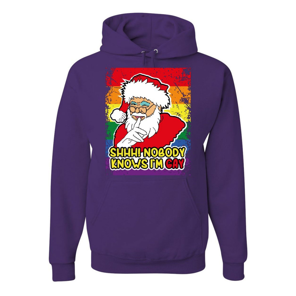 NOBODY KNOWS I'M GAY hoodie christmas santa lgbt xmas ho ho ho sweatshirt purple