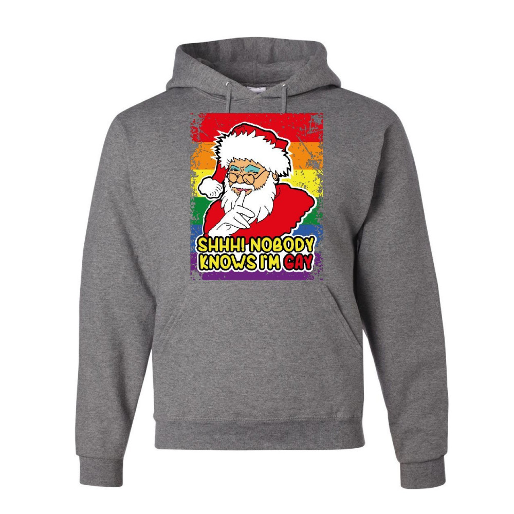 NOBODY KNOWS I'M GAY hoodie christmas santa lgbt xmas ho ho ho sweatshirt gray