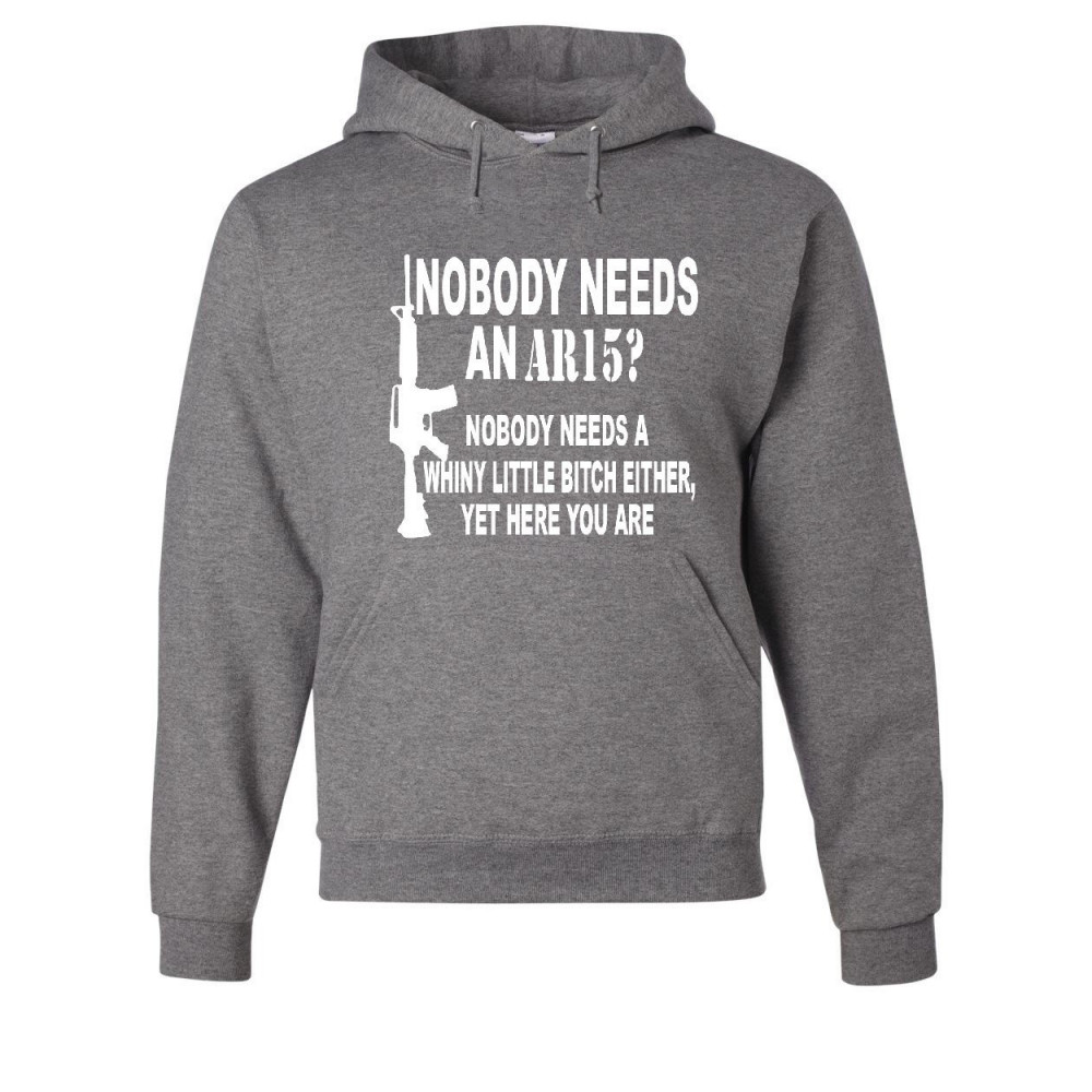 NOBODY NEEDS AN AR15? hoodie funny offensive humor political firearms gun rights sweatshirt gray