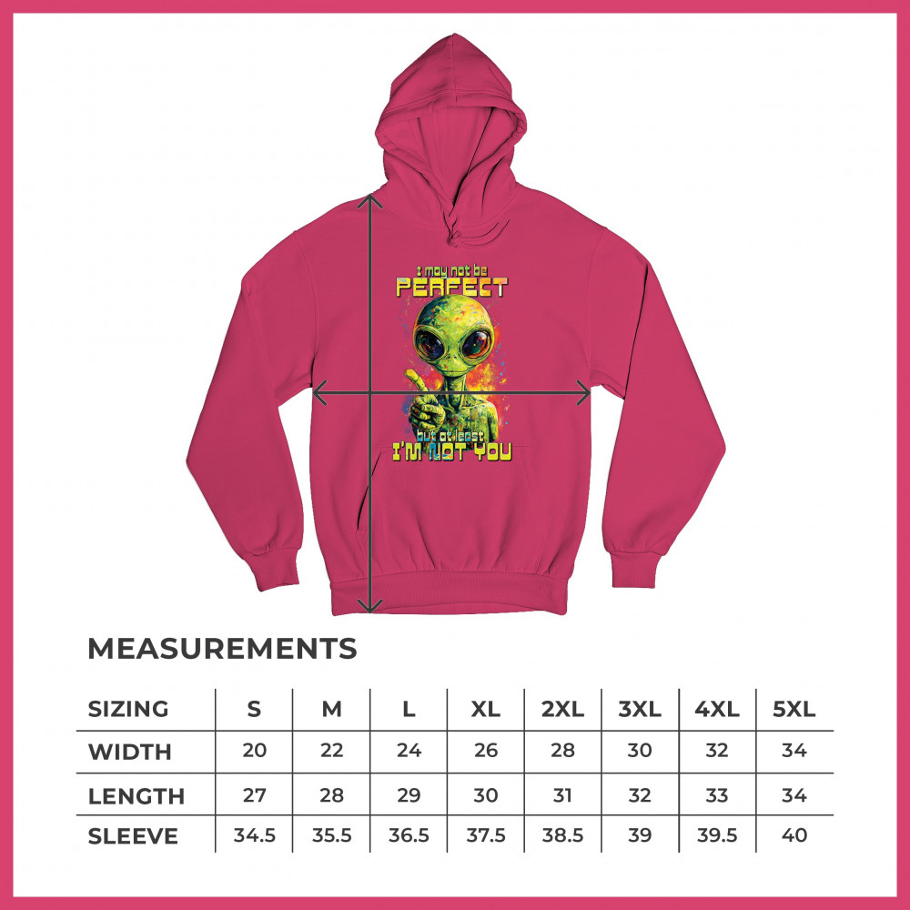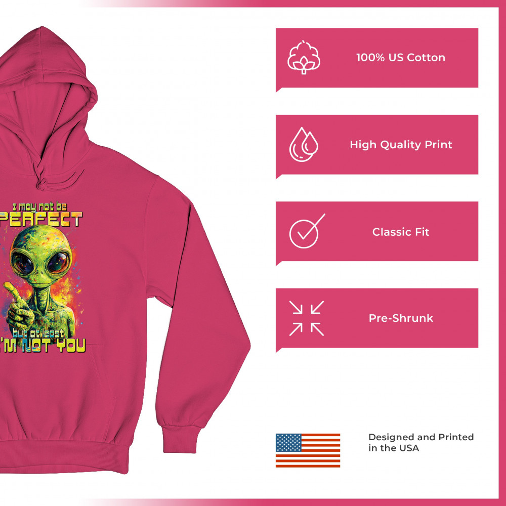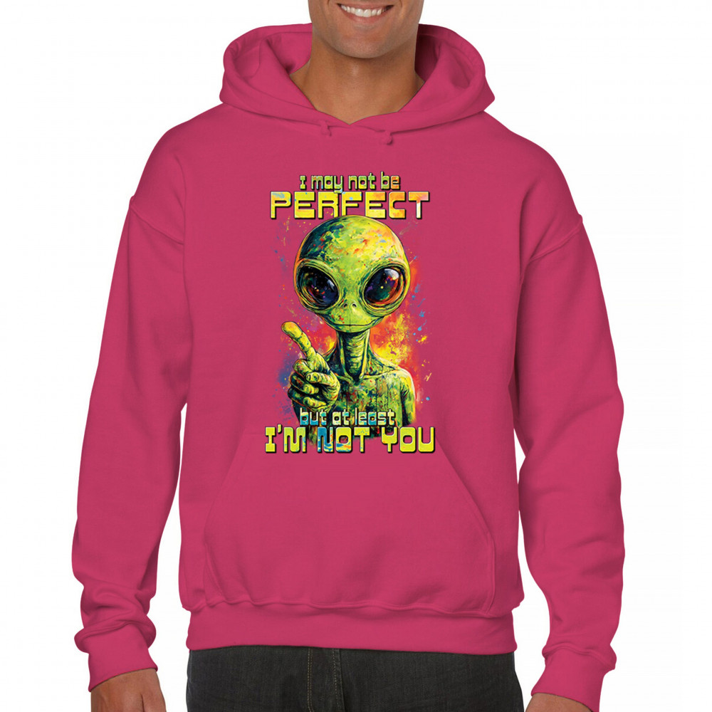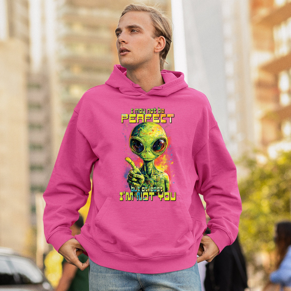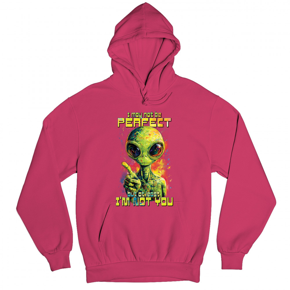 NOT PERFECT BUT AT LEAST NOT YOU unisex hoodie funny alien ufo humor pink