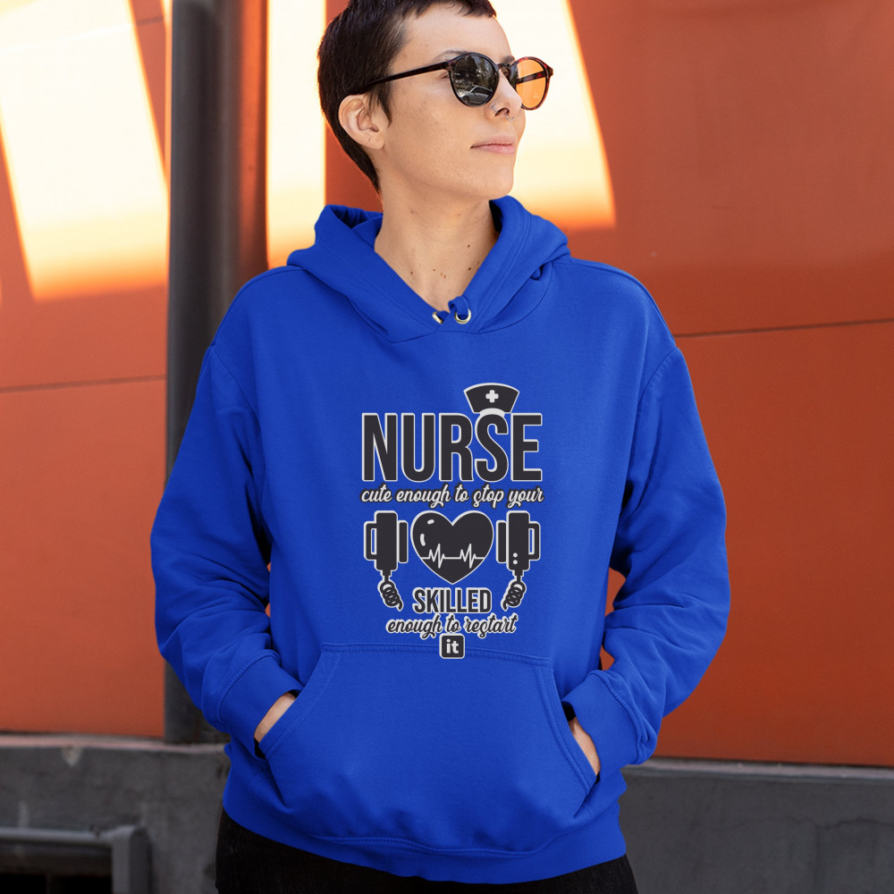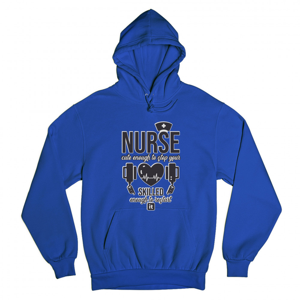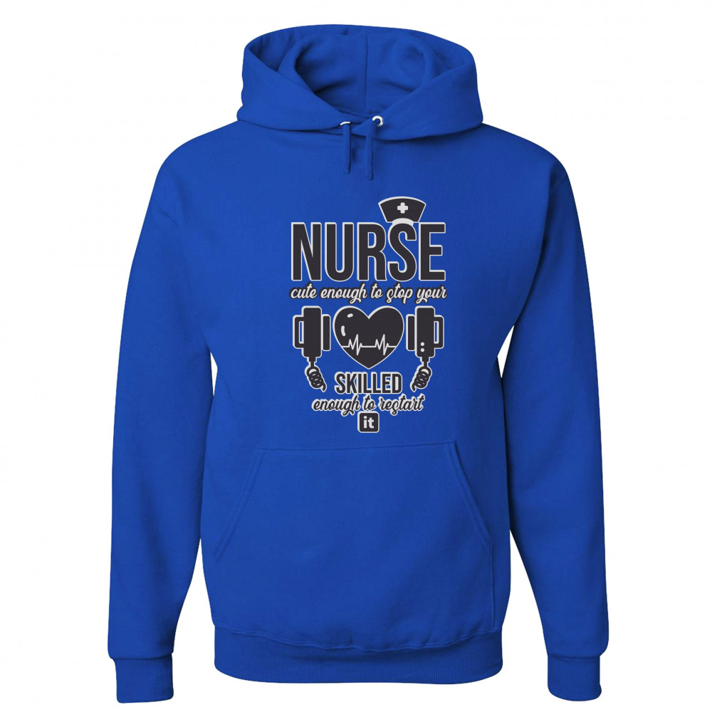 A print saying: "Nurse - Cute Enough to Stop Your Heart, Skilled Enough to Restart It". In the center of the print there is a a heart with two defibrilators to it's sides. A great choice as a gift for a registered nurse, who is busy everyday saving people
