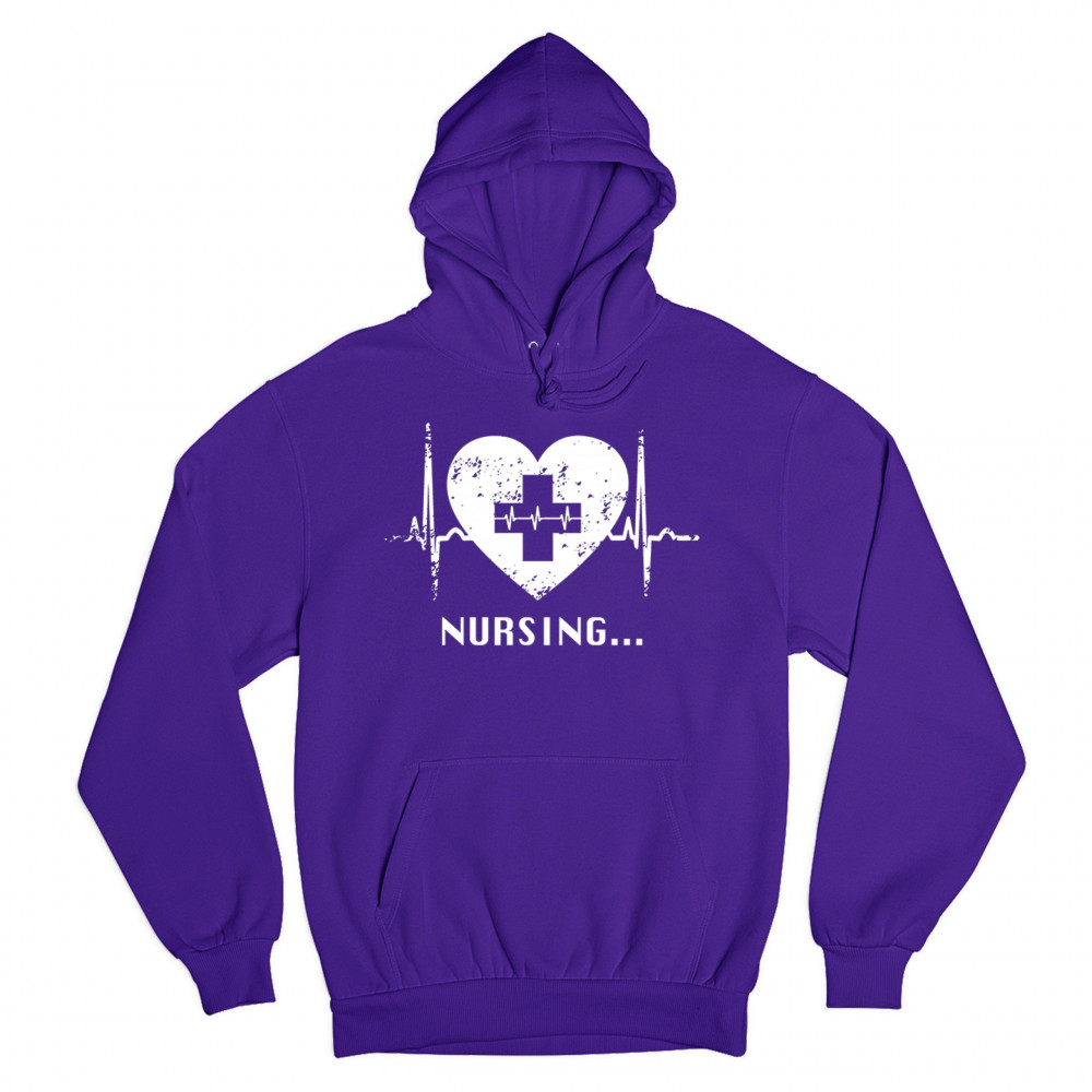 NURSING HEARTBEAT sweatshirt cpr first aid medical assistant emt ems hoodie purple