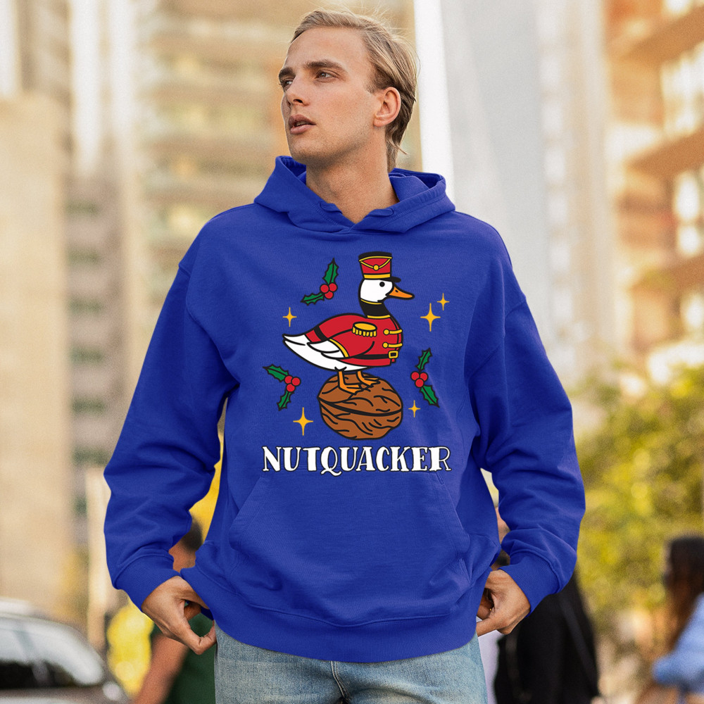 Funny Nutquacker Christmas design featuring a festive duck, holiday humor, and seasonal charm. Great for parties, gifts, and cheerful holiday style.