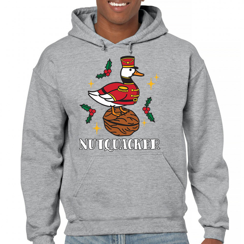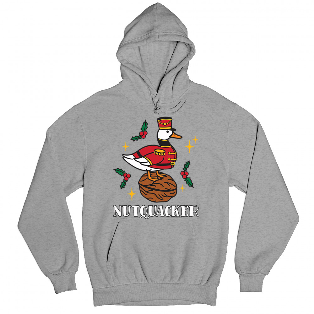 NUTQUACKER unisex hoodie jolly nutcracker ugly sweater christmas goose gray