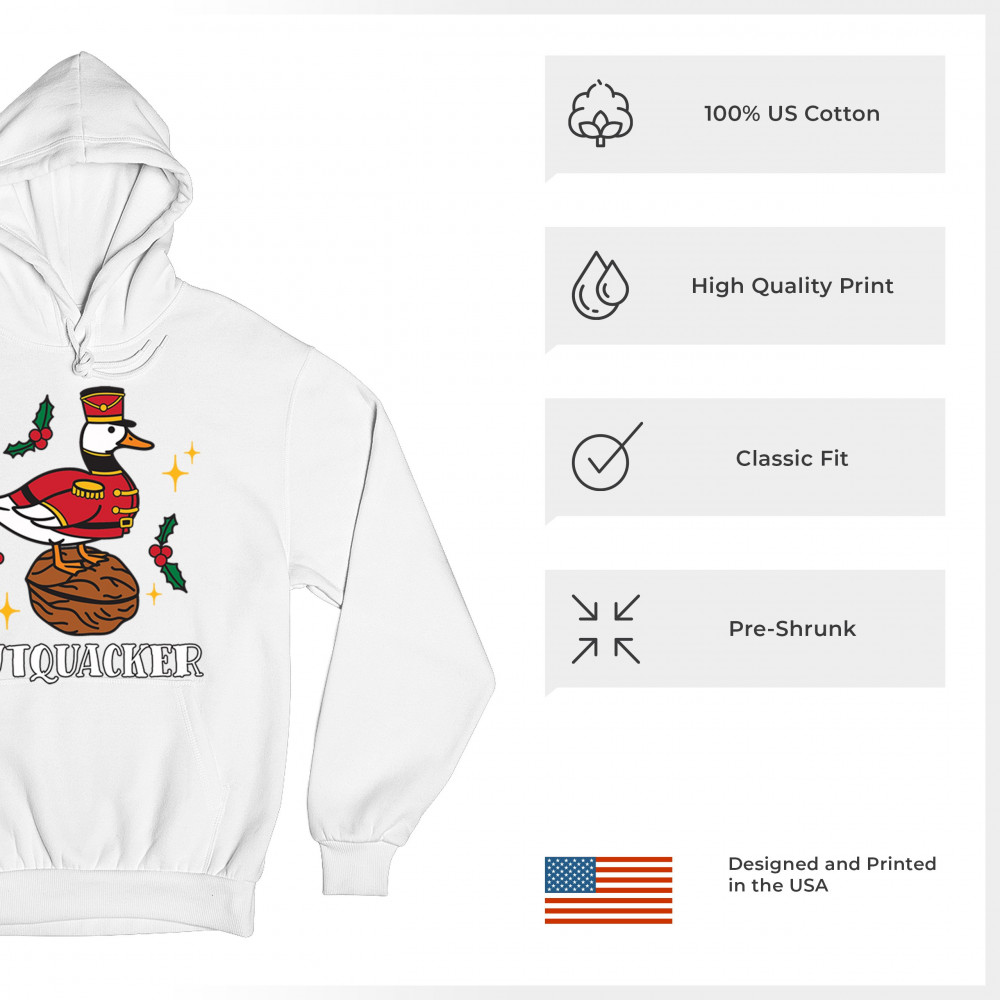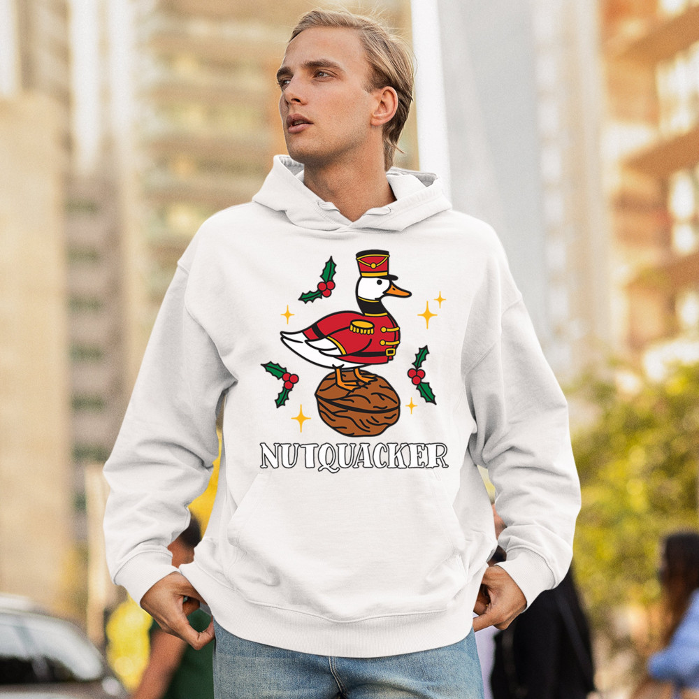 Funny Nutquacker Christmas design featuring a festive duck, holiday humor, and seasonal charm. Great for parties, gifts, and cheerful holiday style.
