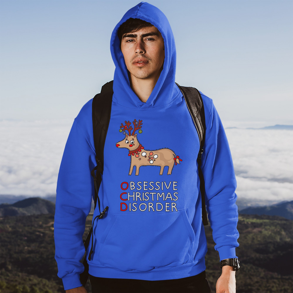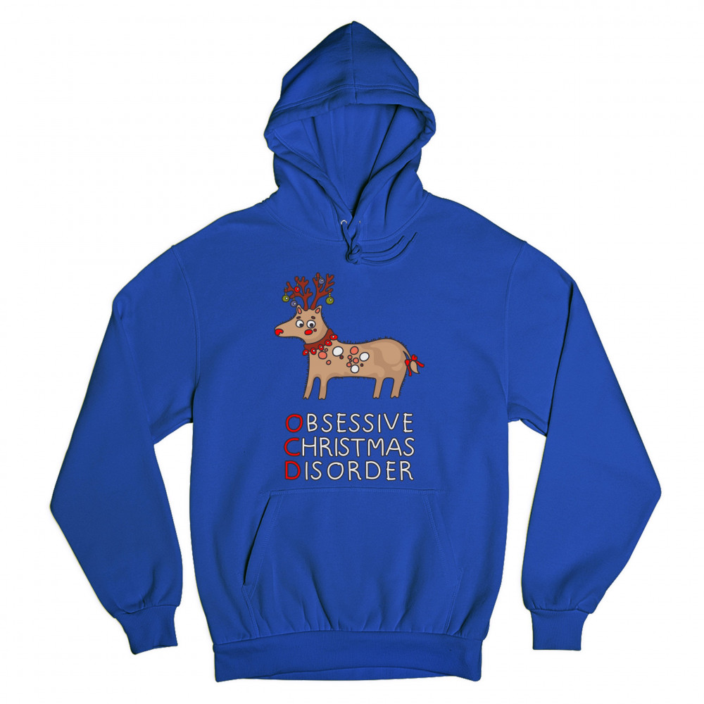 OCD OBSESSIVE CHRISTMAS DISORDER sweatshirt reindeer rudolph funny hoodie royal blue