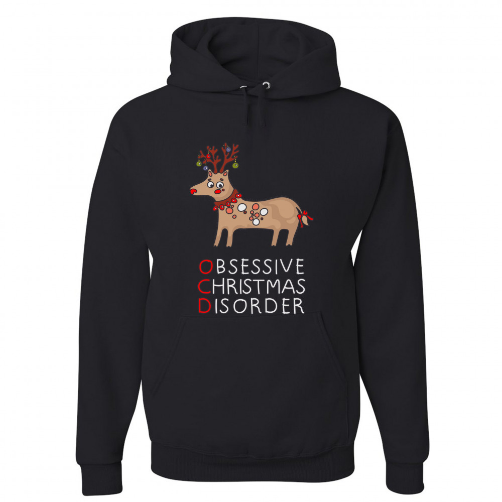 OCD OBSESSIVE CHRISTMAS DISORDER sweatshirt reindeer rudolph funny hoodie black
