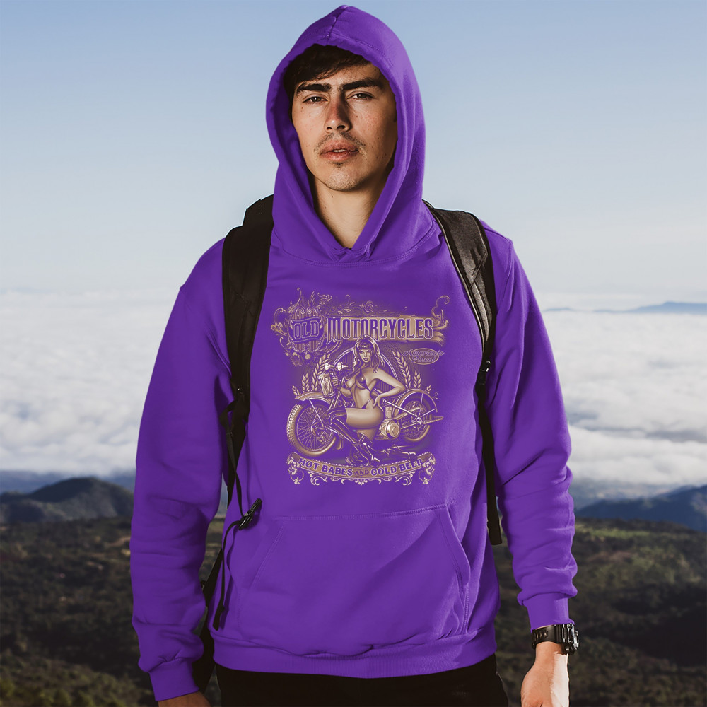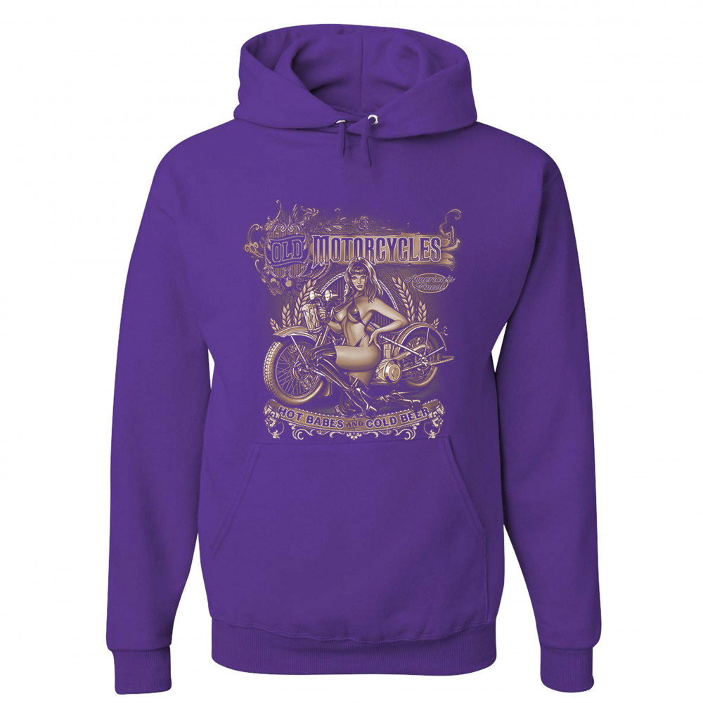 OLD MOTORCYCLES HOT BABES AND COLD BEER sweatshirt biker babe chopper hoodie purple