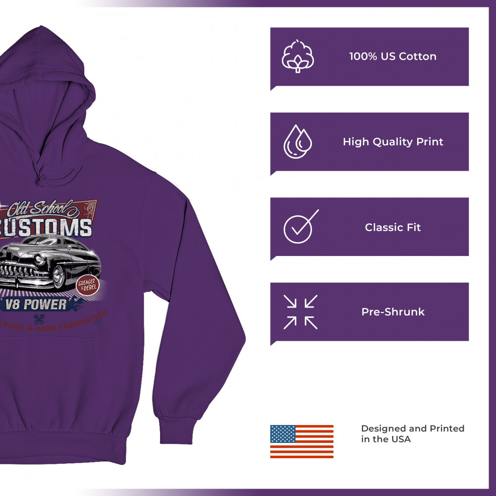 Step into the world of classic automotive culture with our "Old School Customs" t-shirt. Featuring a bold V8 power design, this shirt highlights the art of custom paint and hand fabrication. It's perfect for car enthusiasts, greasers, and rebels who appreciate the unique style of vintage rides. Made from high-quality materials, this tee offers comfort and durability, making it a great choice for car shows or casual outings. Show your love for old-school cars and stand out with this stylish and nostalgic piece. Add a touch of vintage charm to your wardrobe today.