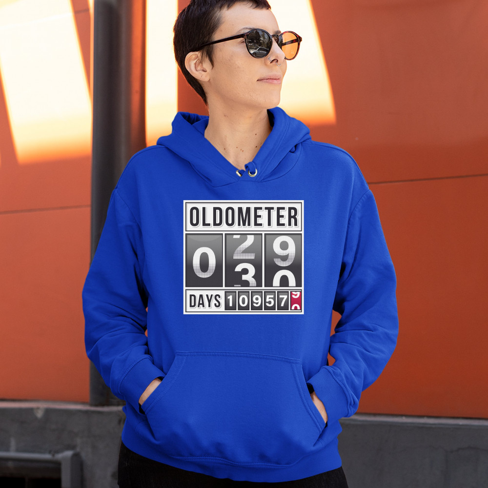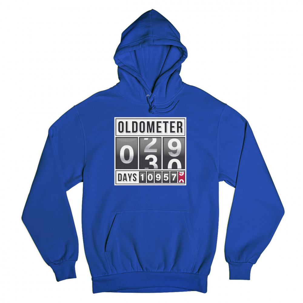 OLDOMETER 29-30 sweatshirt funny odometer anniversary birthday hoodie royal blue