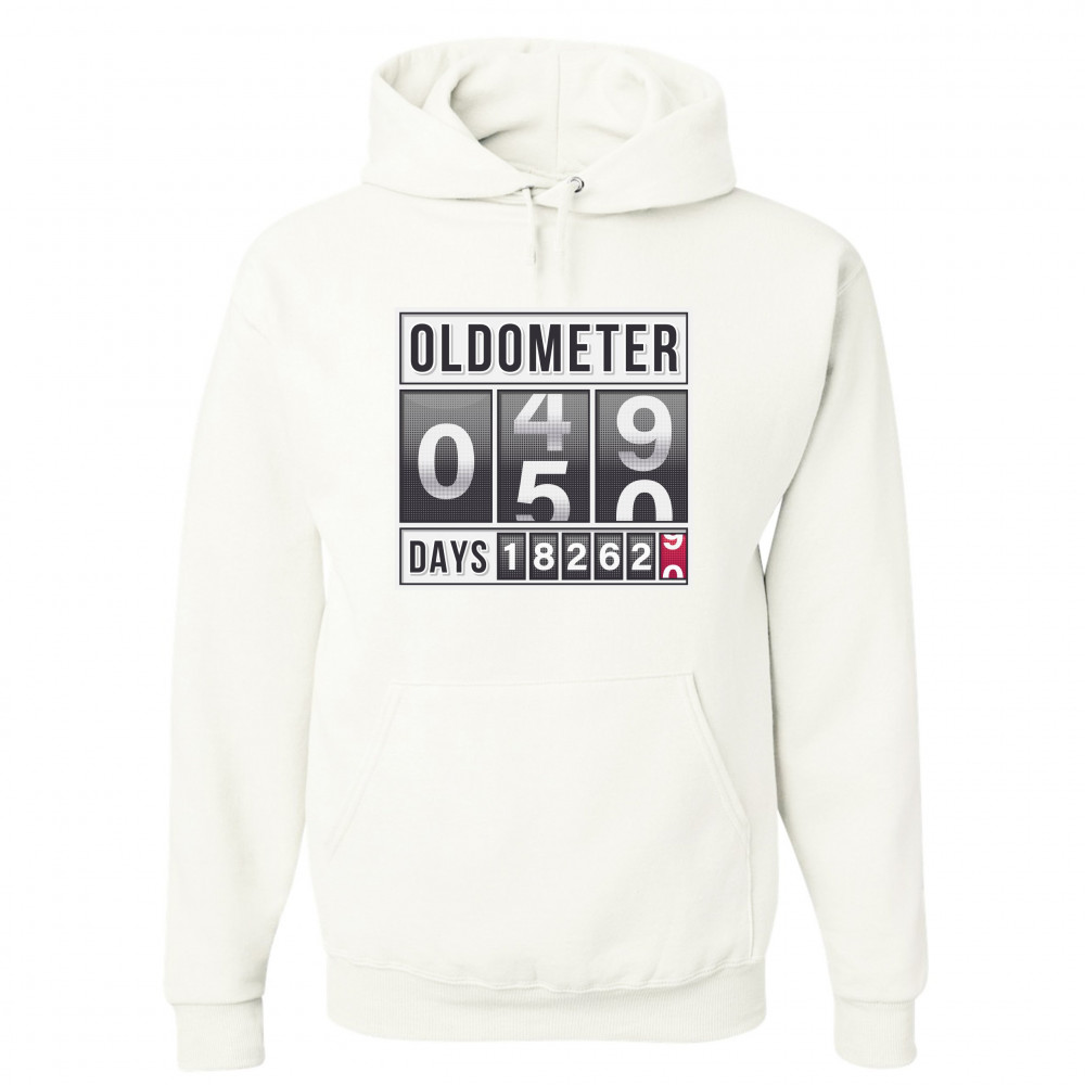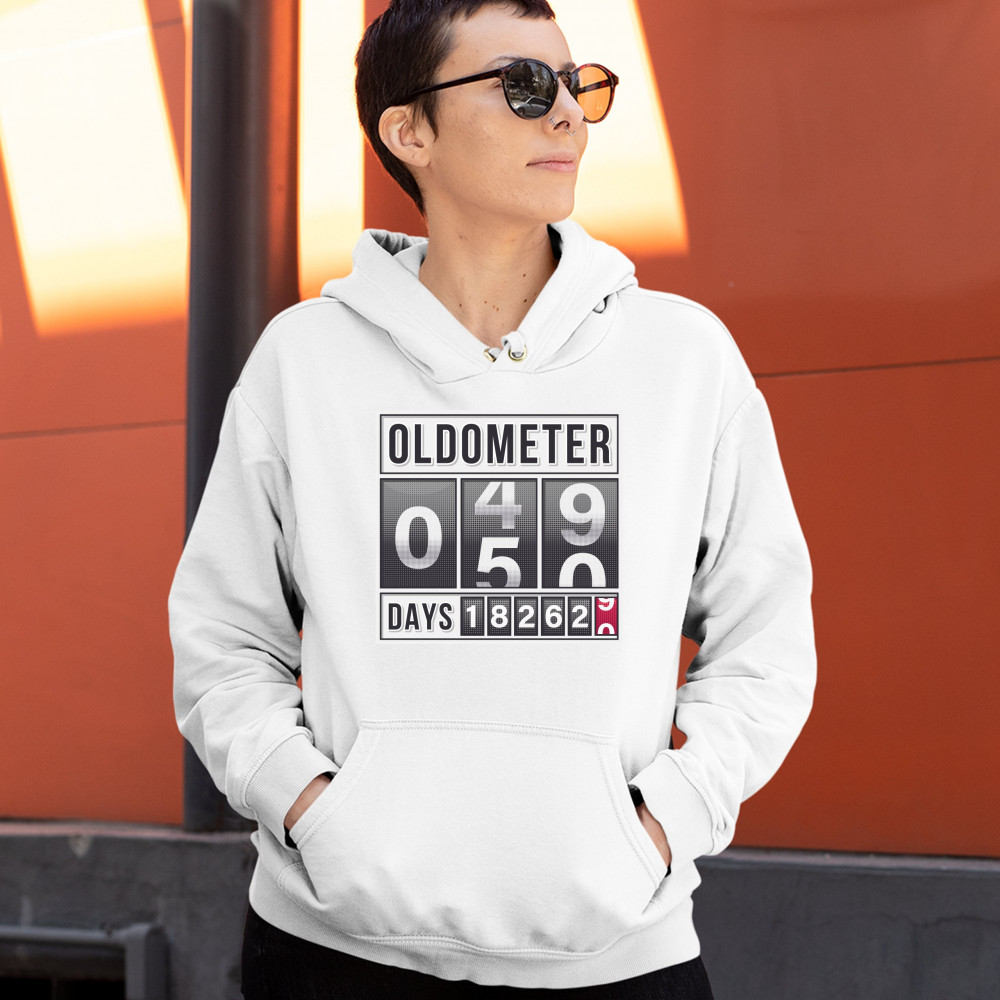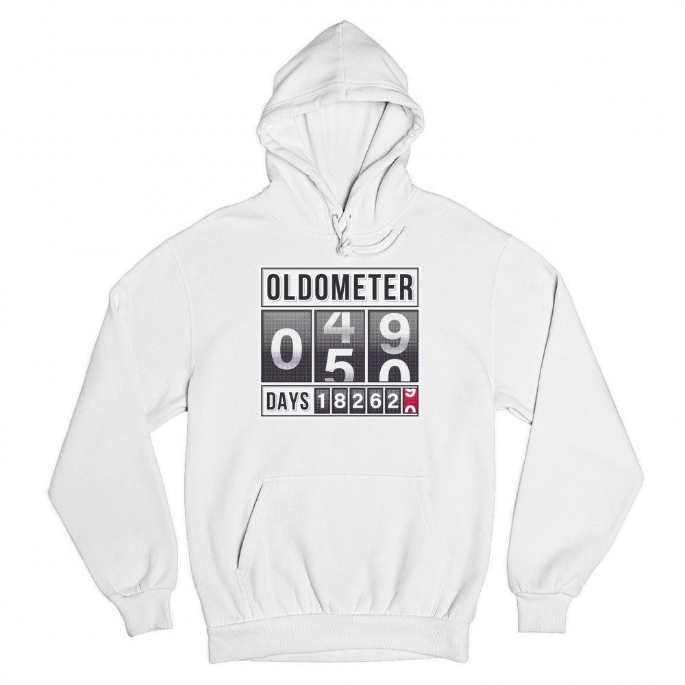 OLDOMETER 49-50 sweatshirt 50th anniversary 50 af funny odometer hoodie white