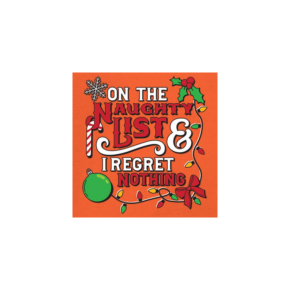 Celebrate the holidays with the playful “Naughty List & I Regret Nothing†design. Perfect for festive gatherings, ugly sweater parties, and holiday fun!