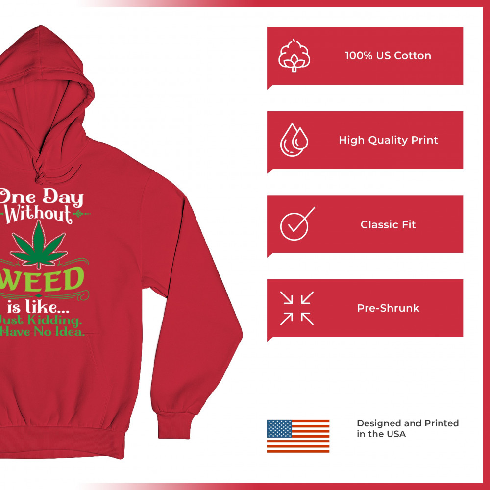 Humorous "One Day Without Weed" design with a bold cannabis leaf. Perfect for fans of Mary Jane, stoned humor, and relaxed, trippy style. Ideal for chill vibes.
