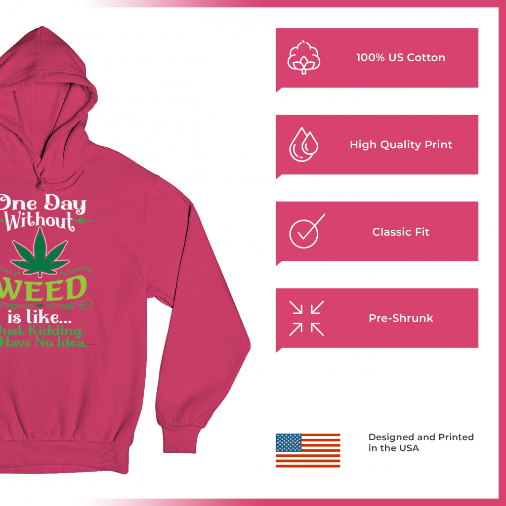 Express your love for Mary Jane and your sense of humor with our "One Day Without Weed" design. Featuring a bold cannabis leaf and a playful, witty message, this design is perfect for those who enjoy the chill vibes of cannabis culture. Ideal for relaxing with your best buds, making a statement about legalization, or simply adding some fun to your wardrobe. Embrace the stoned humor and show off your relaxed, trippy style with this unique design.