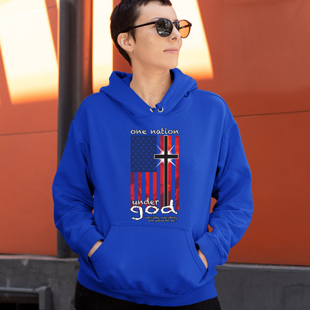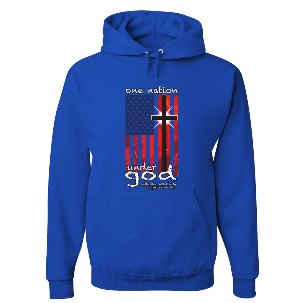 ONE NATION UNDER GOD sweatshirt usa american flag patriotic christian hoodie royal blue