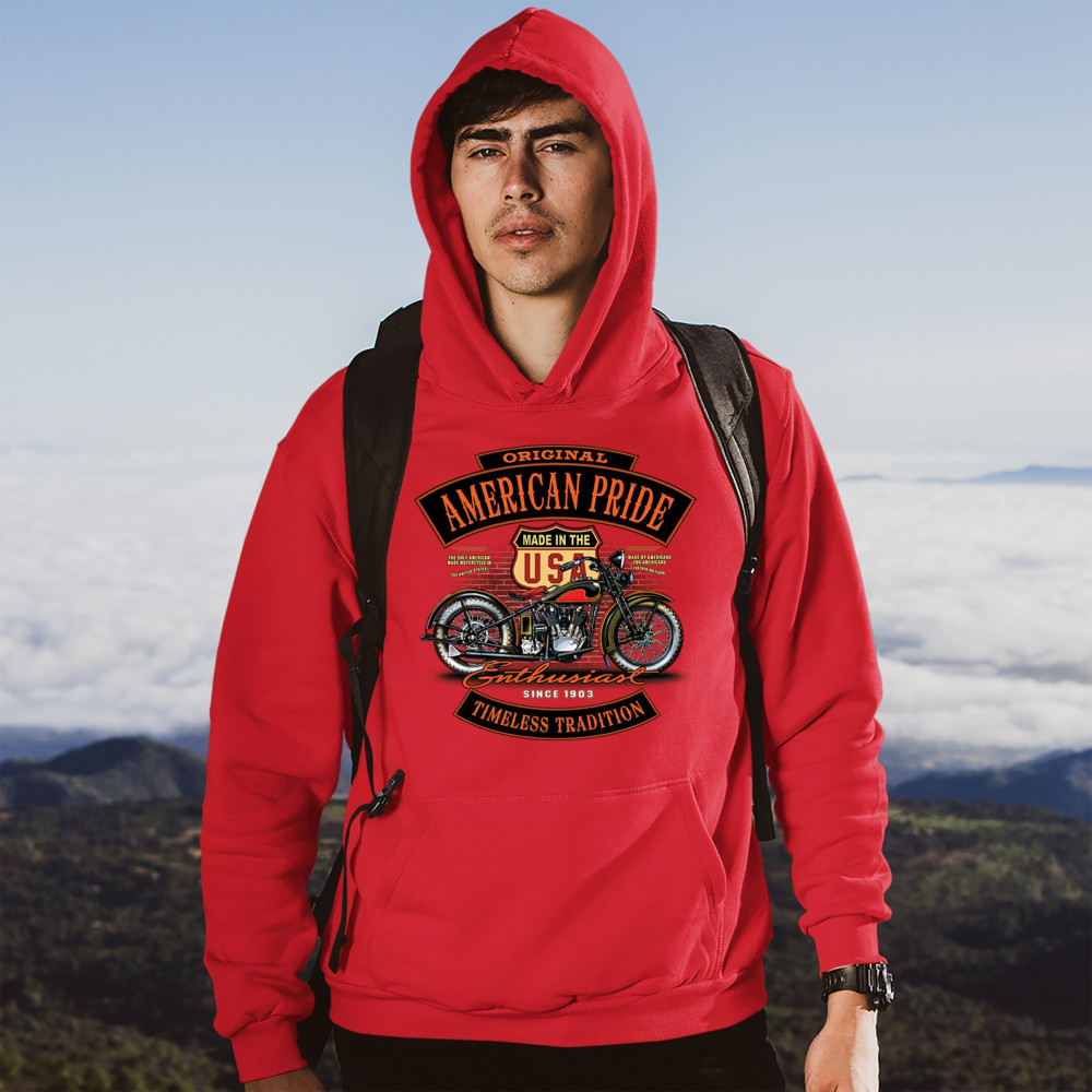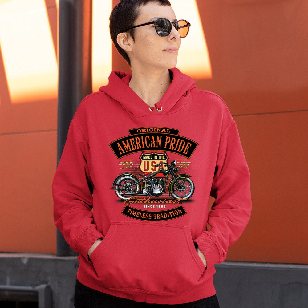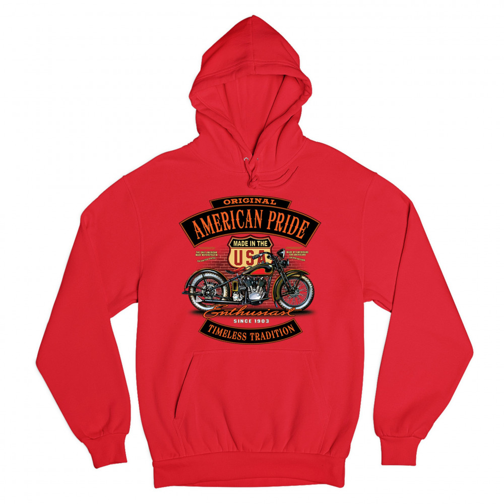 ORIGINAL AMERICAN PRIDE sweatshirt biker chopper motorcycle enthusiast hoodie red