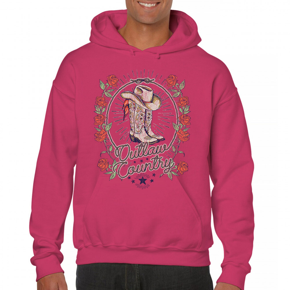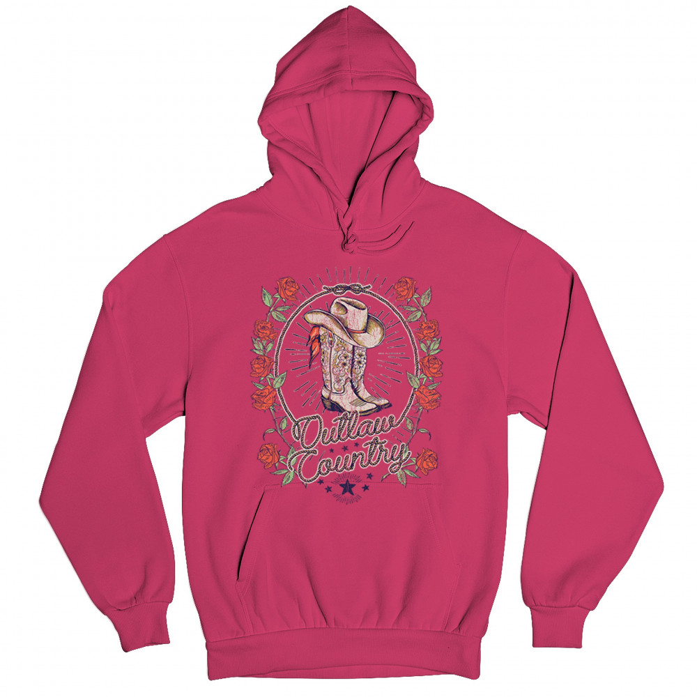 Outlaw country design with cowgirl boots, hat, and roses. Bold feminine western style for concerts, rodeos, and southern lifestyle lovers.