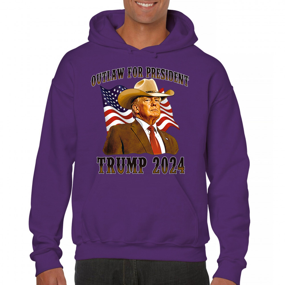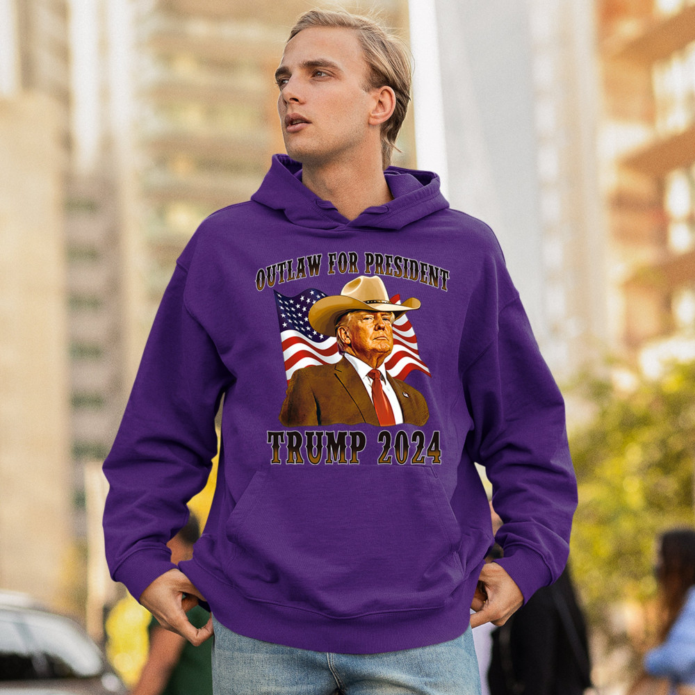 The "Outlaw for President" Trump 2024 design is a powerful symbol of American resilience and conservative pride. Featuring Donald J. Trump in a cowboy hat with the American flag waving behind, this design speaks to supporters who believe in the America First movement, conservative values, and a rebel spirit. Ideal for rallies, patriotic events, and anyone looking to make a bold statement for the 47th President of the United States.