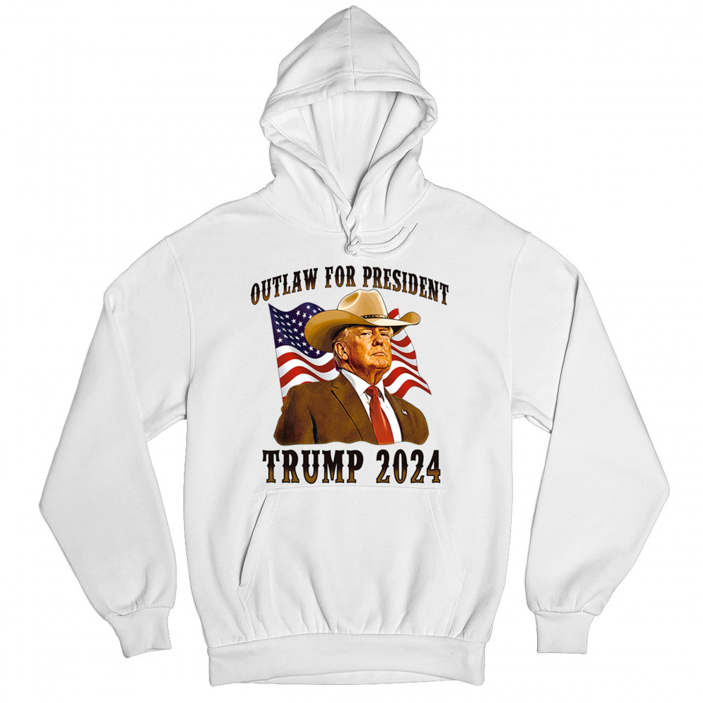 Bold "Outlaw for President" Trump 2024 design for conservative supporters, featuring Donald J. Trump and the American flag. Show your patriotism.