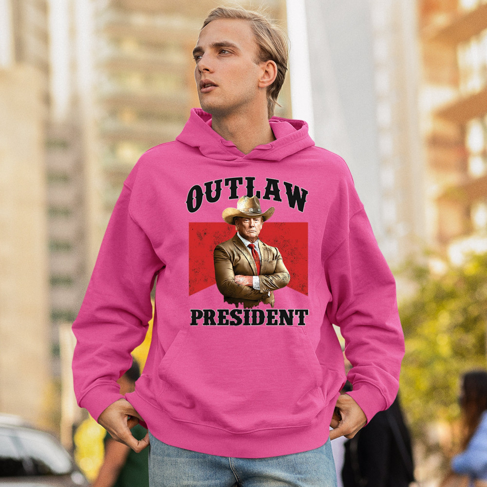 Stand out with the bold "Outlaw President" design, featuring Donald J. Trump in a striking pose that symbolizes conservative values, America First ideals, and the Red Wave movement. Celebrate the fight for victory, the people's mandate, and the unwavering belief in the 47th President. This design is perfect for Trump supporters and Republicans who embody strength and determination.