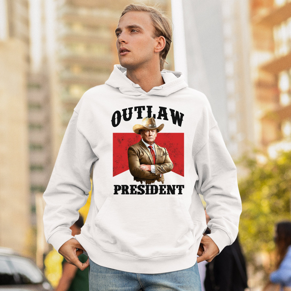 Stand out with the bold "Outlaw President" design, featuring Donald J. Trump in a striking pose that symbolizes conservative values, America First ideals, and the Red Wave movement. Celebrate the fight for victory, the people's mandate, and the unwavering belief in the 47th President. This design is perfect for Trump supporters and Republicans who embody strength and determination.
