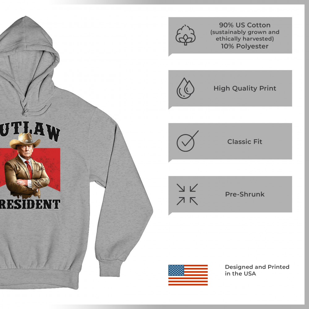Stand out with the bold "Outlaw President" design, featuring Donald J. Trump in a striking pose that symbolizes conservative values, America First ideals, and the Red Wave movement. Celebrate the fight for victory, the people's mandate, and the unwavering belief in the 47th President. This design is perfect for Trump supporters and Republicans who embody strength and determination.