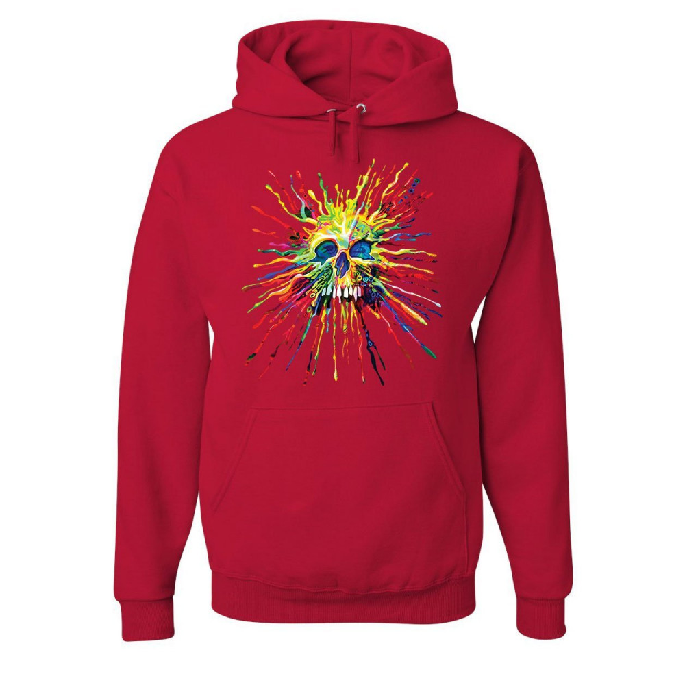 PAINT SPLATTER SKULL hoodie multicolor art crazy melting drip sweatshirt red