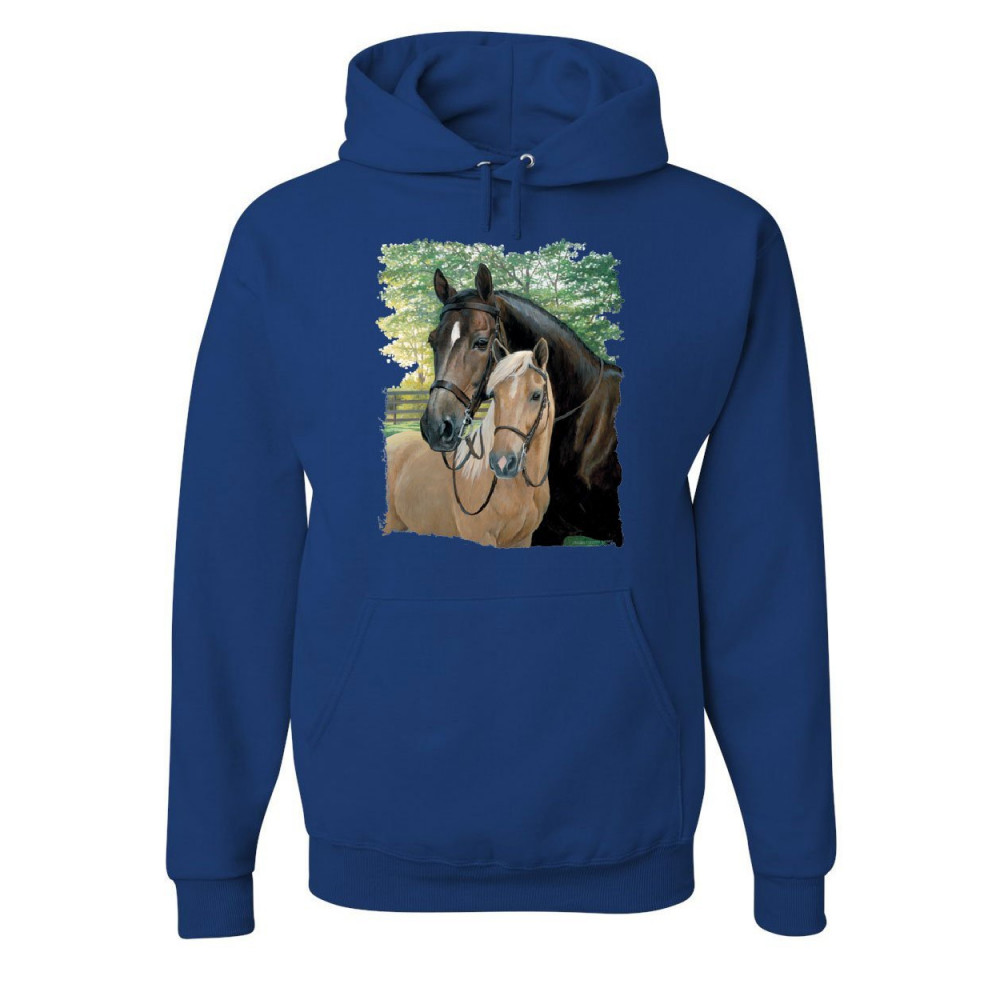 PAIR OF HORSES hoodie mustangs horseback riding pony stallion sweatshirt royal blue