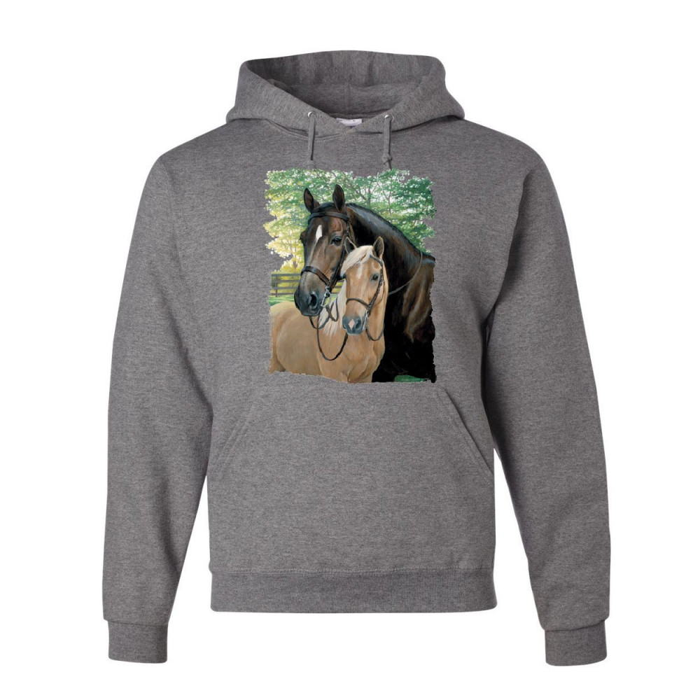 PAIR OF HORSES hoodie mustangs horseback riding pony stallion sweatshirt gray