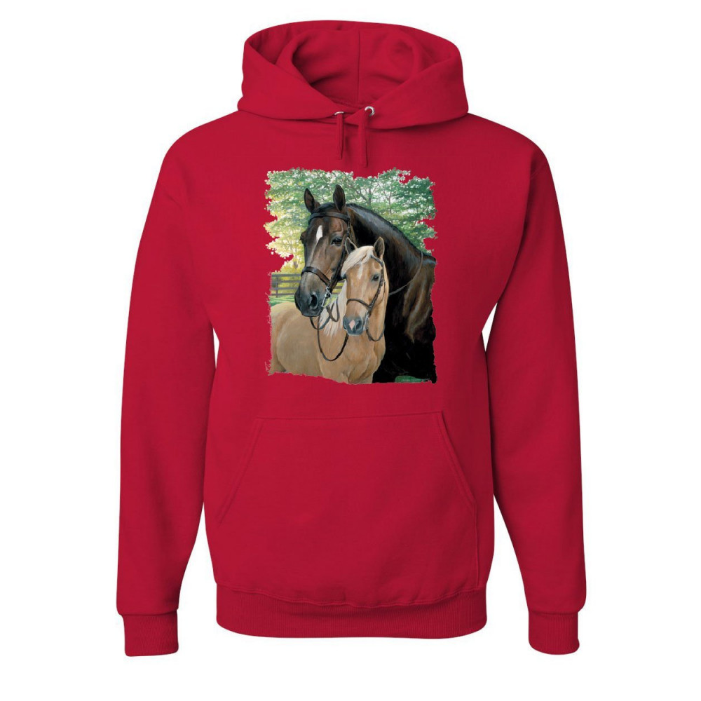 PAIR OF HORSES hoodie mustangs horseback riding pony stallion sweatshirt red