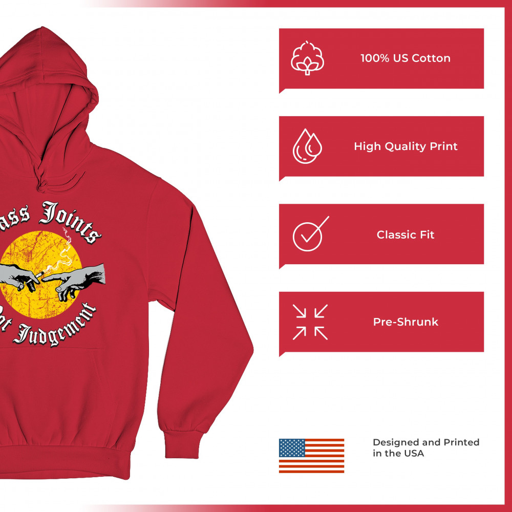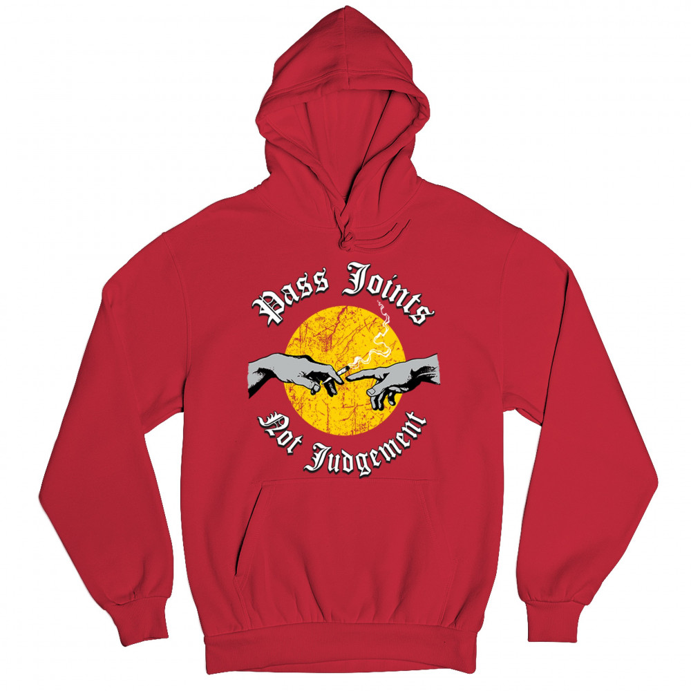 Cannabis culture twist on classic art. Hands passing a joint with “Pass Joints Not Judgement†message. Chill, bold, and unapologetically stoner.