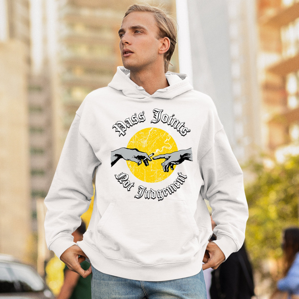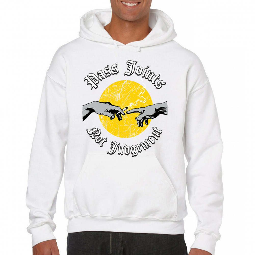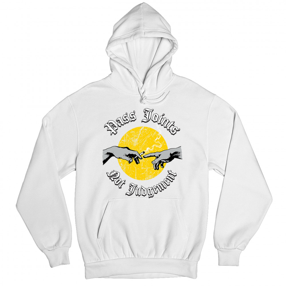 PASS JOINTS NOT JUDGEMENT sweatshirt weed smoking cannabis blunt kush hoodie white