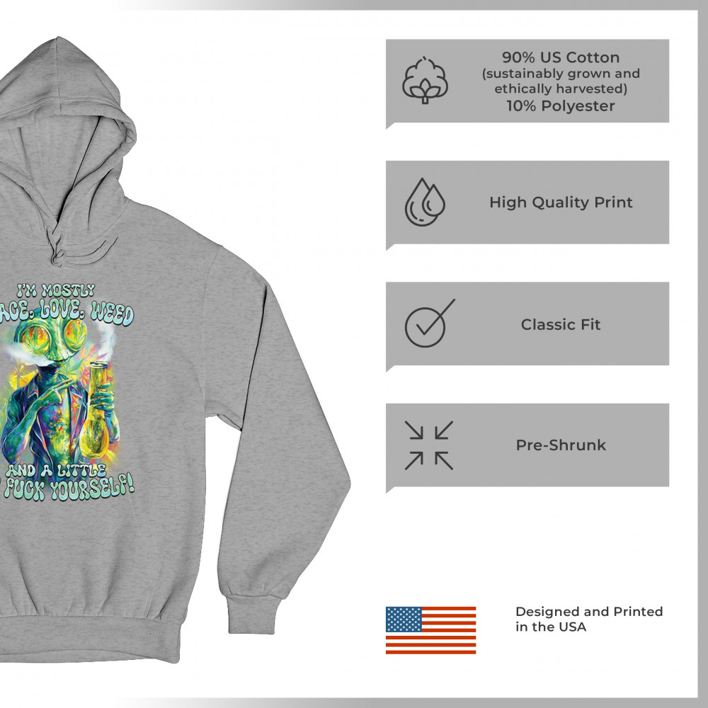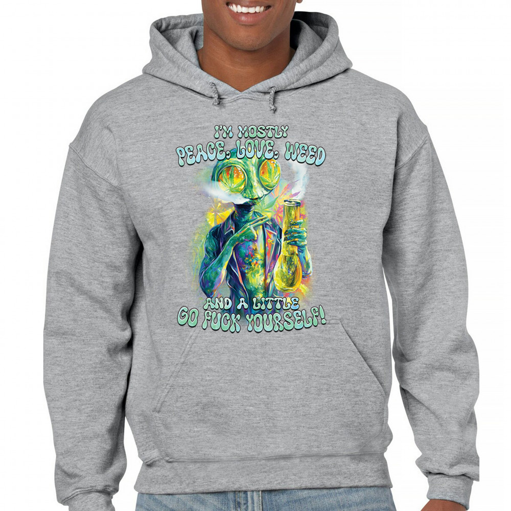 This bold alien stoner design fuses colorful weed art with raw honesty and stoner attitude. Featuring a high alien and vibrant peace love weed vibe, it's perfect for unapologetic smokers who blend kindness and truth. Wear it at festivals, smoke sessions, or whenever your mood is 80% peace, 20% sarcasm. It’s humor, cannabis culture, and bold energy rolled into one.