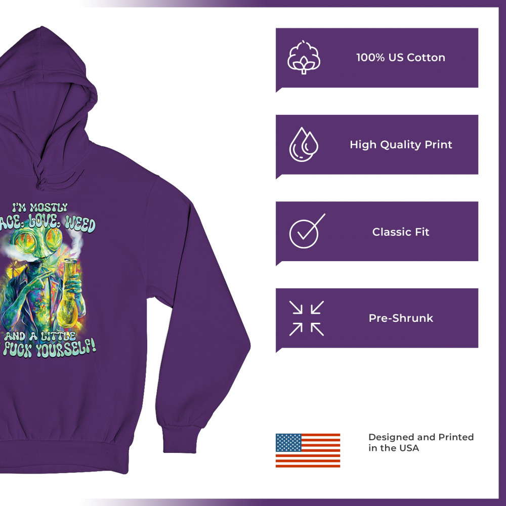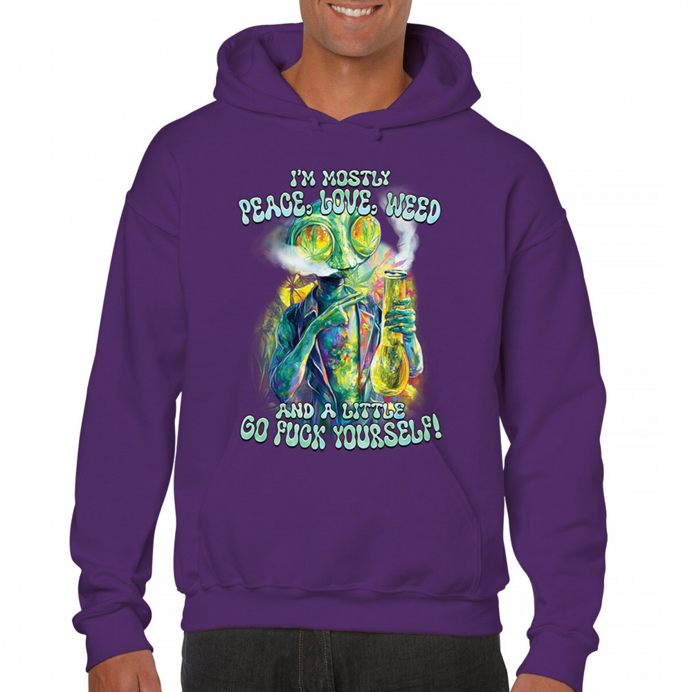 This bold alien stoner design fuses colorful weed art with raw honesty and stoner attitude. Featuring a high alien and vibrant peace love weed vibe, it's perfect for unapologetic smokers who blend kindness and truth. Wear it at festivals, smoke sessions, or whenever your mood is 80% peace, 20% sarcasm. It’s humor, cannabis culture, and bold energy rolled into one.