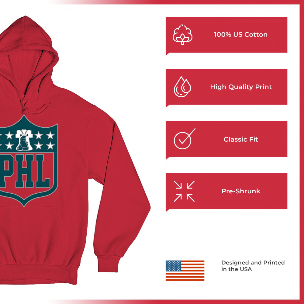 Bold PHL shield with liberty bell, perfect for Sunday football, big game energy, and Philadelphia pride for true fans.