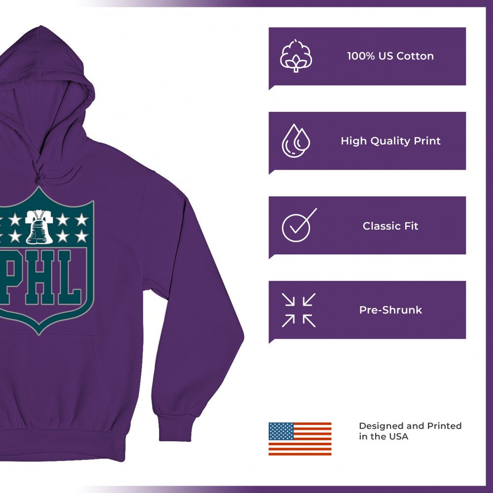 Bold PHL shield with liberty bell, perfect for Sunday football, big game energy, and Philadelphia pride for true fans.