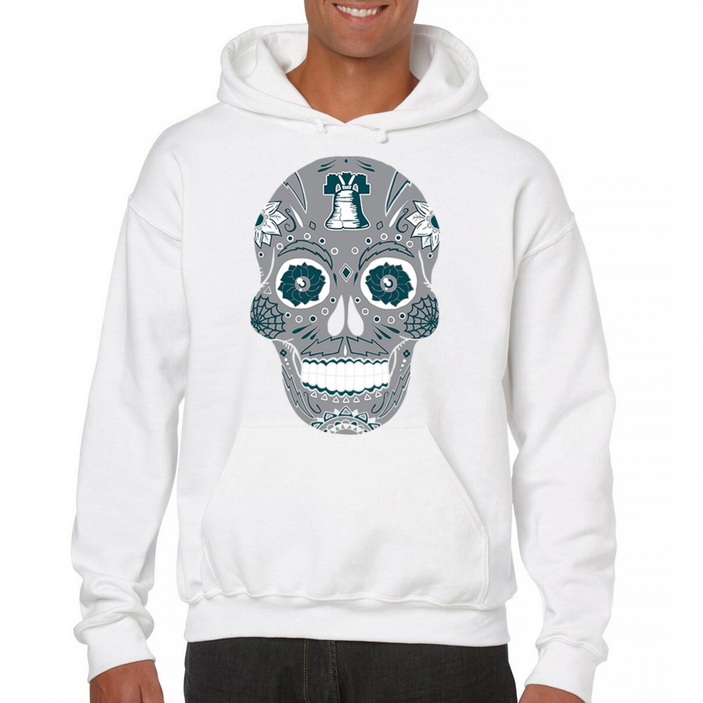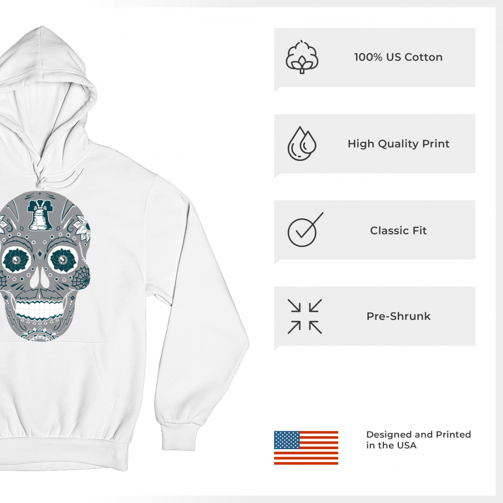 Philly meets tradition in this Sugar Skull design, mixing calavera art with the iconic liberty bell and marigold flowers. Perfect for Philly sports culture, fantasy league energy, or game day skull vibes, it captures Philly gothic art and fan zone spirit. A unique way to honor Dia de los Muertos while showing local Philadelphia pride and heritage in bold style.