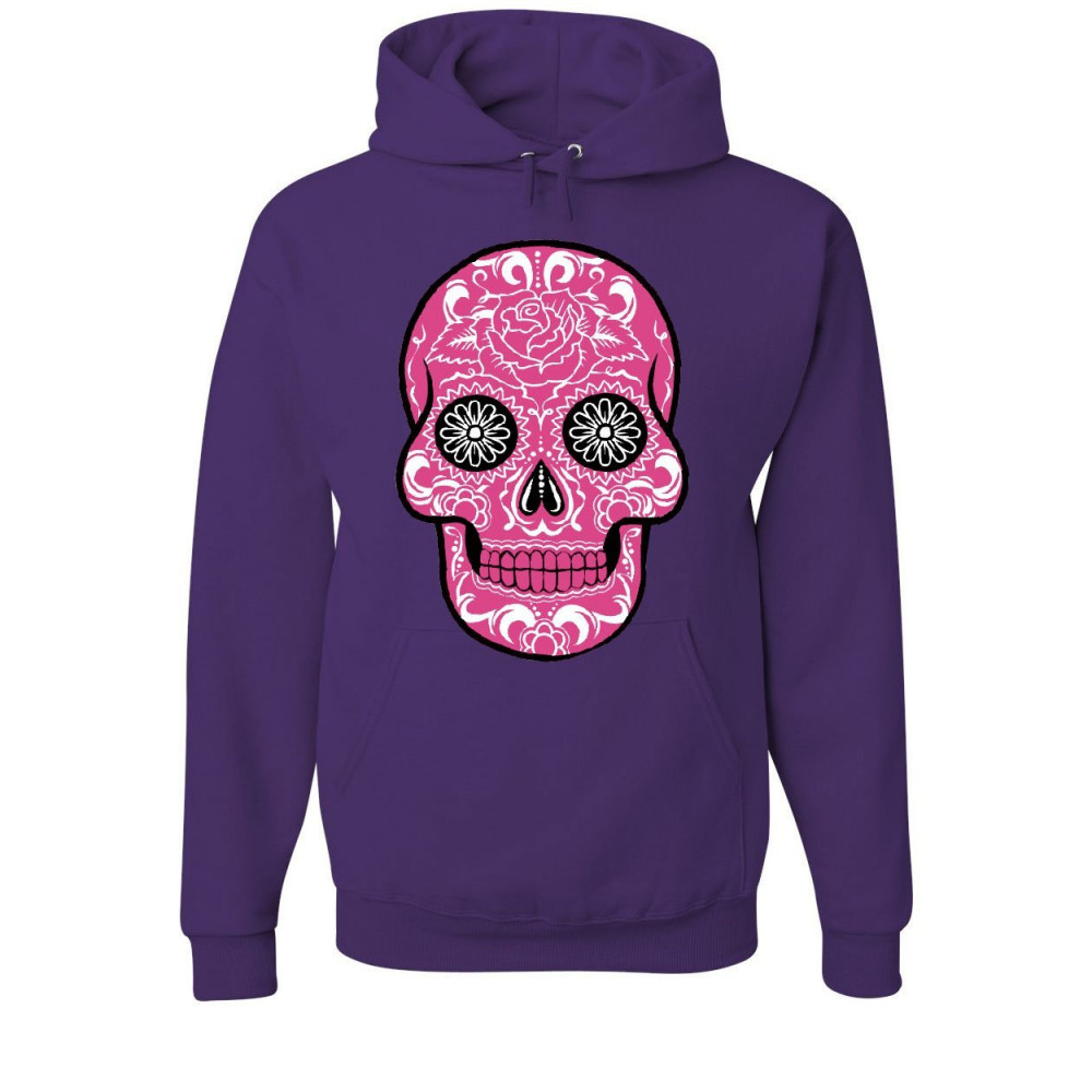 CALAVERA PINK SUGAR SKULL pink sugar skull with roses hoodie day of the dead sweatshirt purple