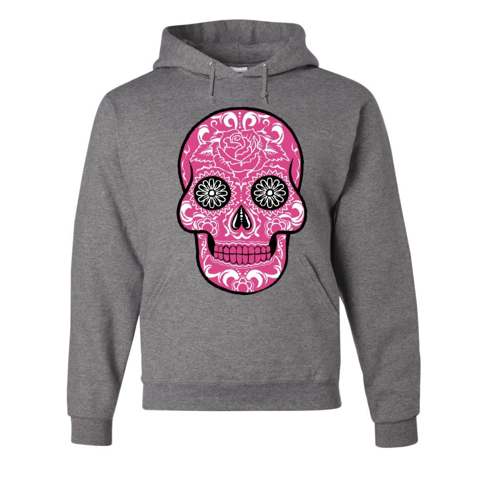 CALAVERA PINK SUGAR SKULL pink sugar skull with roses hoodie day of the dead sweatshirt gray