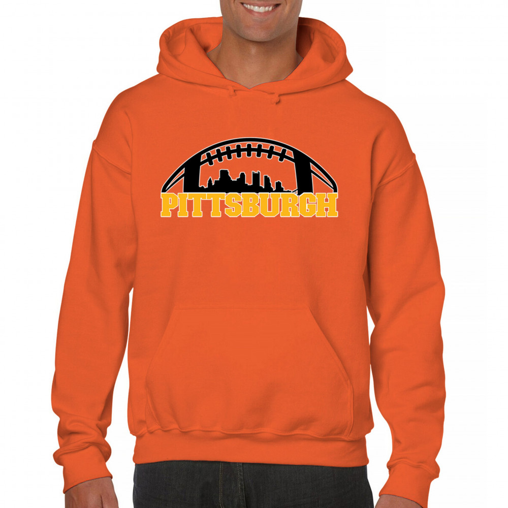 Celebrate Pittsburgh pride with a bold football design featuring the city skyline. Perfect for fans, game days, tailgates, and Steel City enthusiasts.