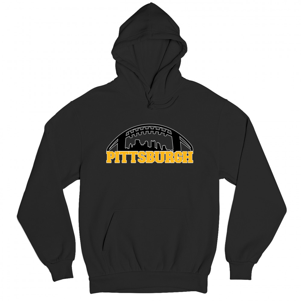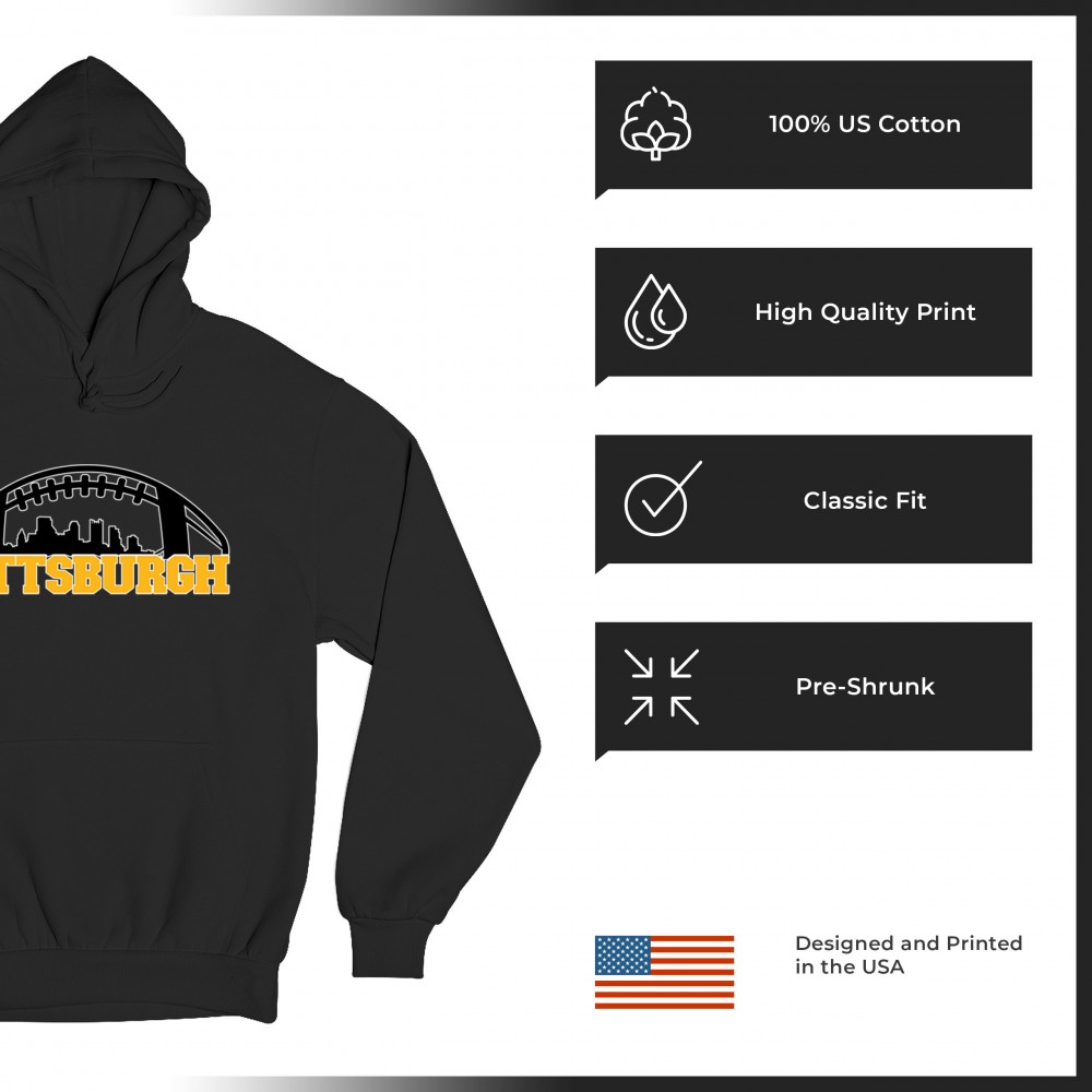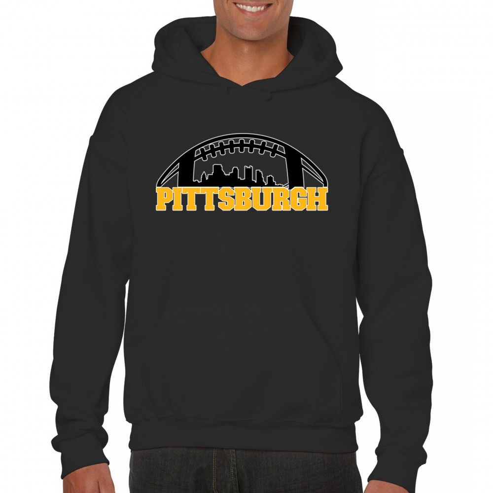 Embrace your Steel City pride with this bold Pittsburgh-themed design, showcasing the city skyline in a unique football graphic. Perfect for game day celebrations, tailgating parties, or everyday wear, this design captures the energy and passion of Pittsburgh's legendary sports culture. Whether you're cheering on your favorite team or representing your city, this design is a must-have for Pittsburgh fans.