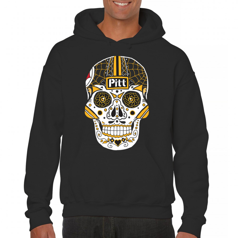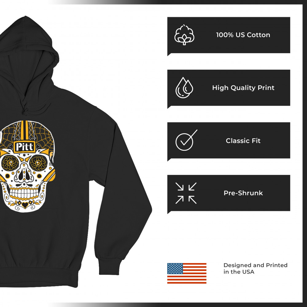 Pittsburgh Sugar Skull with Steel City tradition, black & gold pride, Rust Belt toughness, playoff energy, and fan culture.