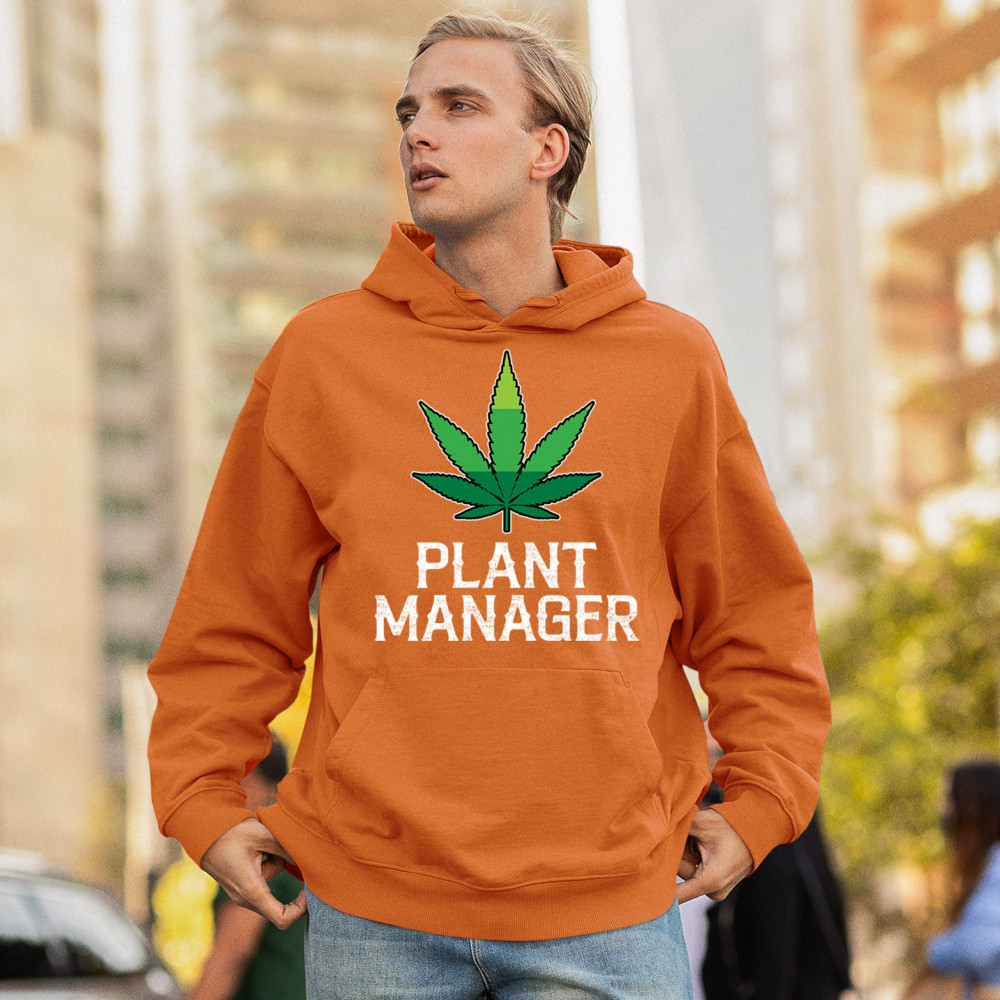 Humorous "Plant Manager" design featuring a bold green cannabis leaf. Perfect for fans of Mary Jane, stoned humor, and relaxed style. Ideal for chill vibes.