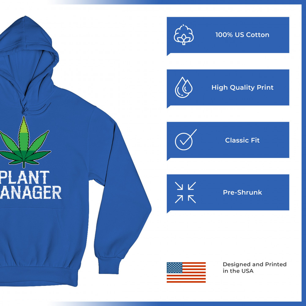 Humorous "Plant Manager" design featuring a bold green cannabis leaf. Perfect for fans of Mary Jane, stoned humor, and relaxed style. Ideal for chill vibes.