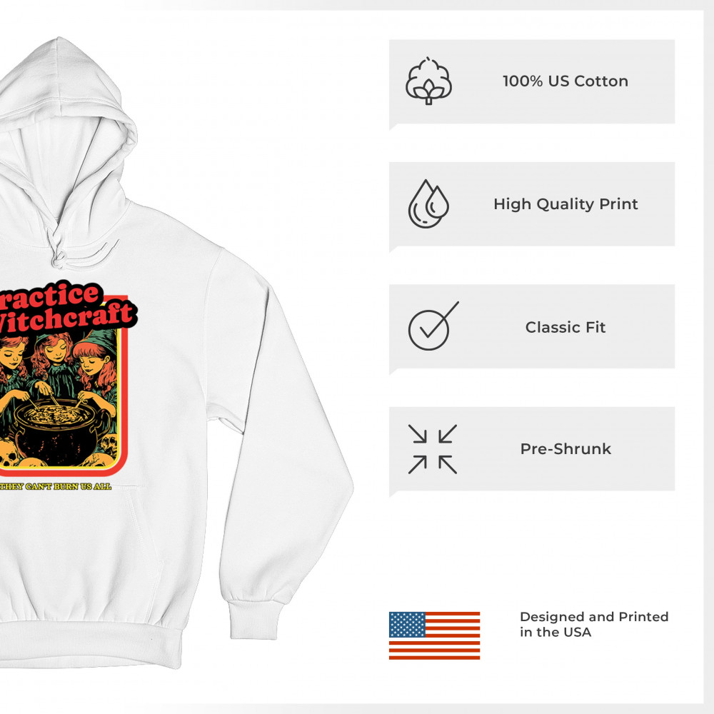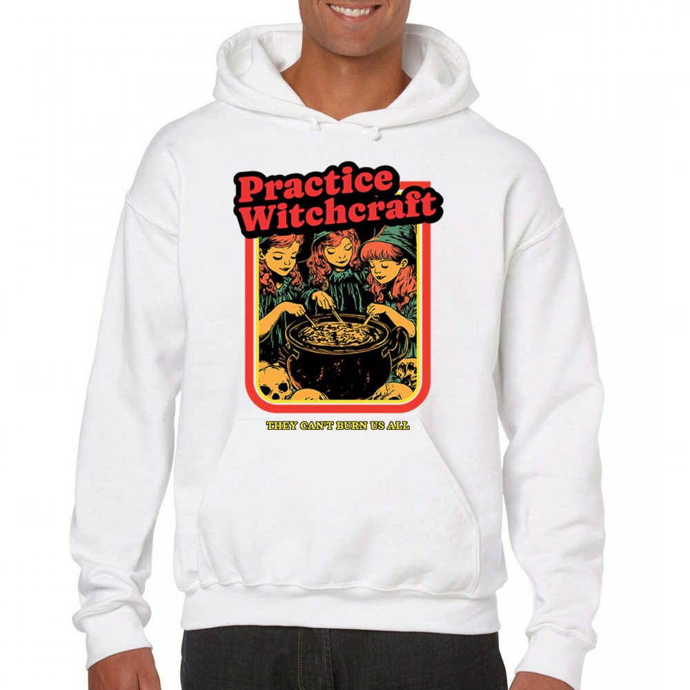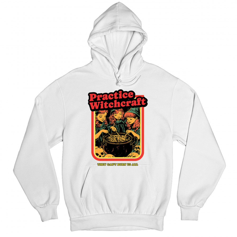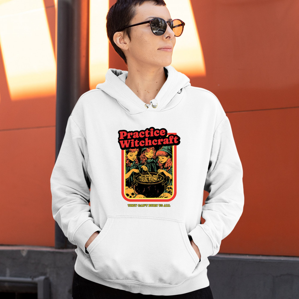 PRACTICE WITCHCRAFT unisex hoodie they can't burn us all halloween white