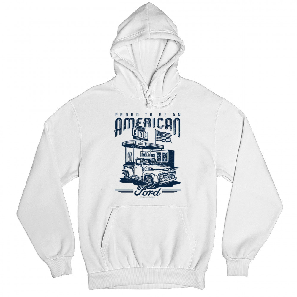 Celebrate Ford's legacy with this vintage 1950s F-Series truck design featuring an American flag. A perfect gift for Ford and classic car enthusiasts.