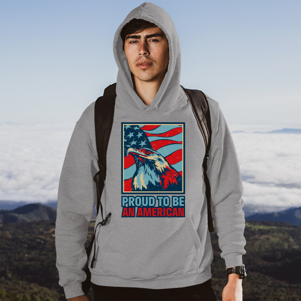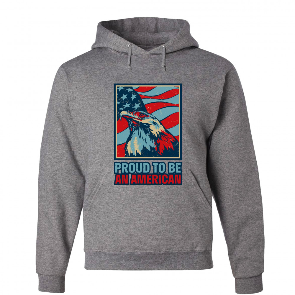 PROUD TO BE AN AMERICAN sweatshirt 4th of july bald eagle patriotic hoodie gray