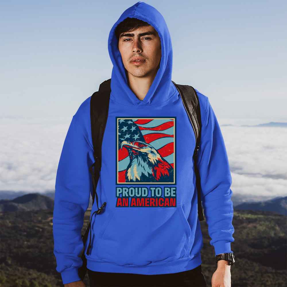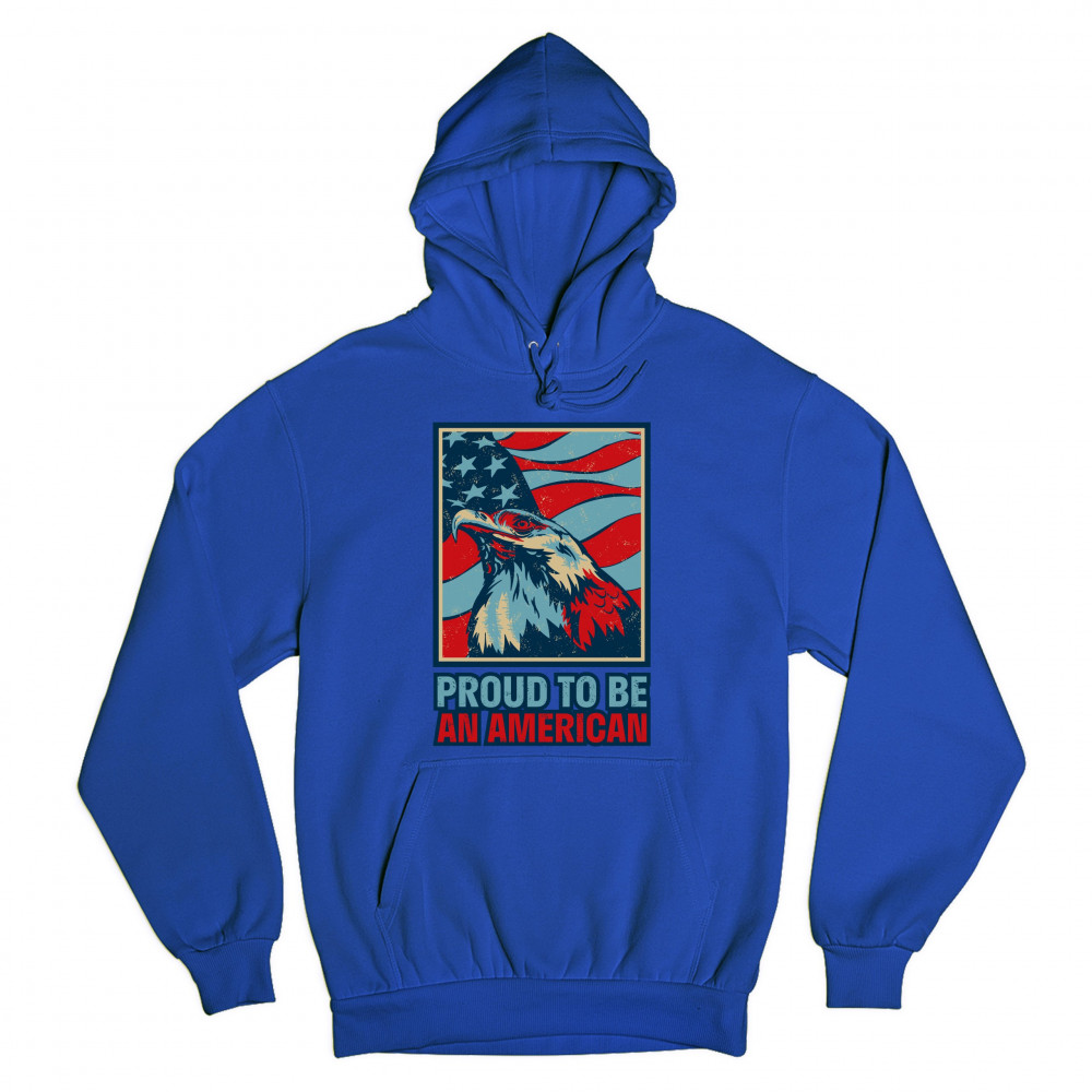 PROUD TO BE AN AMERICAN sweatshirt 4th of july bald eagle patriotic hoodie royal blue