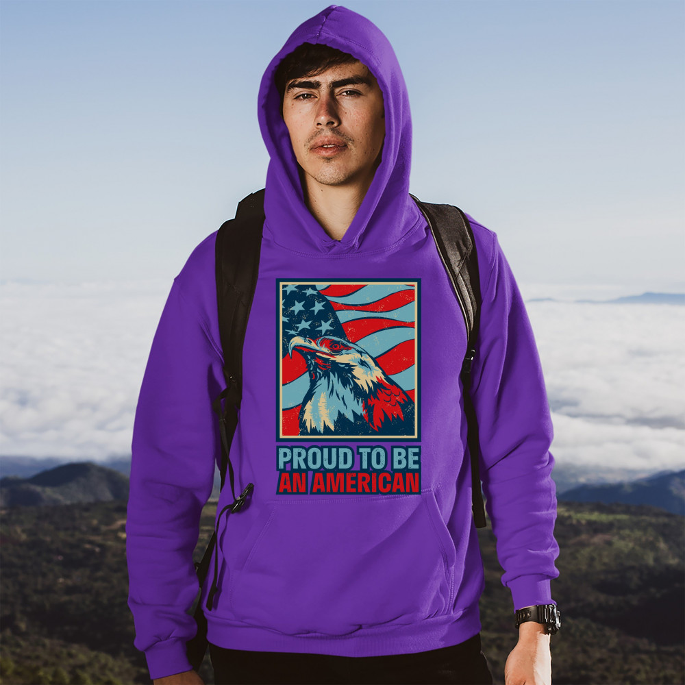 PROUD TO BE AN AMERICAN sweatshirt 4th of july bald eagle patriotic hoodie purple