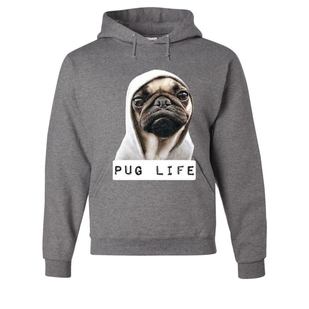 PUG LIFE FUNNY hoodie dope thug life dog parody hipster sweatshirt gray